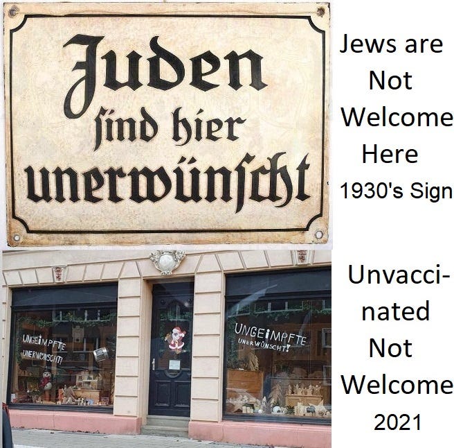 “Comparing compulsory vaccinations and the ever-growing restrictions on the unvaccinated to the Jews in the Holocaust is anti-Semitic.”